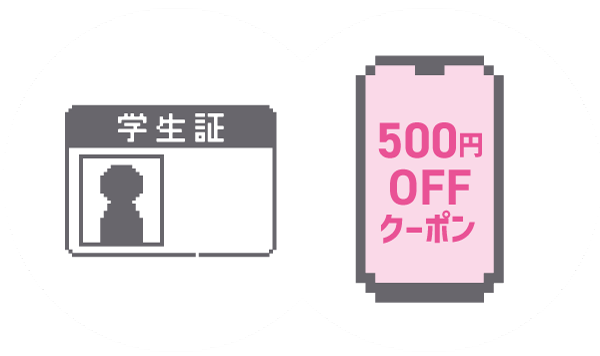 クーポン利用画面+学生証 のご提示で、その場で 500円OFF!