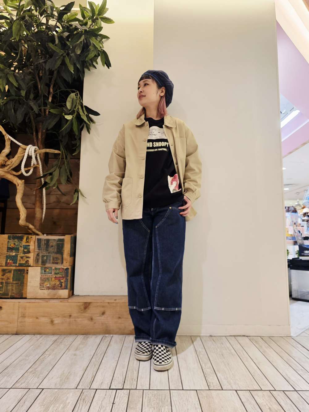 本日はチェックワンピースを使いダークトーンで組み合わせました。 ゆるっとラフなシルエットが、抜け感ある大人スタイルに。 短めの着丈とボックスシルエット...