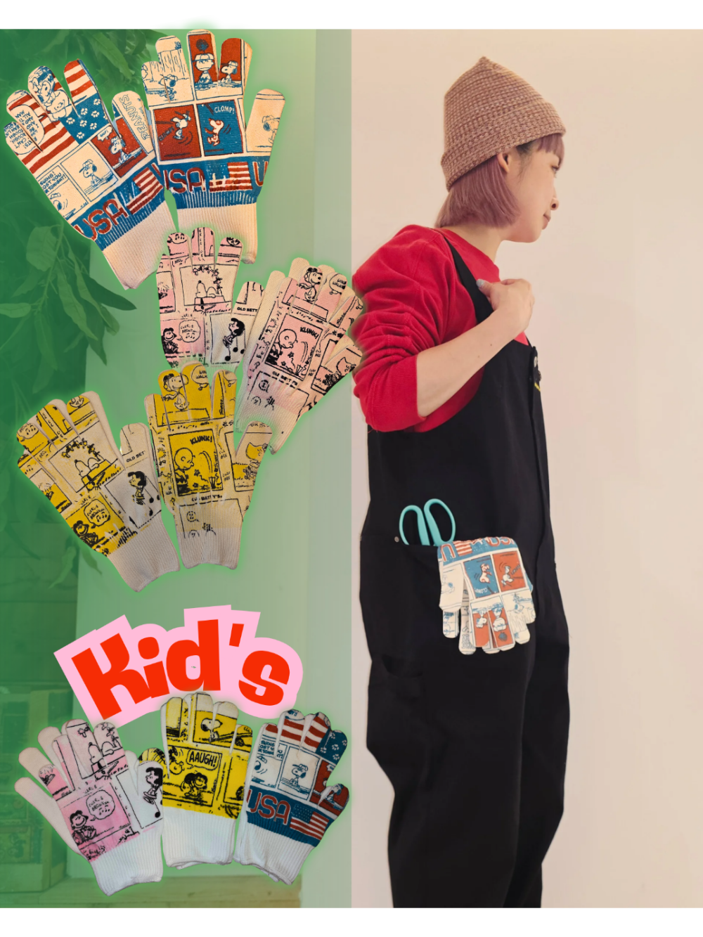 目を惹くカラー・デザインがかわいい! スヌーピーオリジナルプリントのガーデニンググローブです! しっかりした生地の手袋なのでお庭作業やDIYでも大活躍...