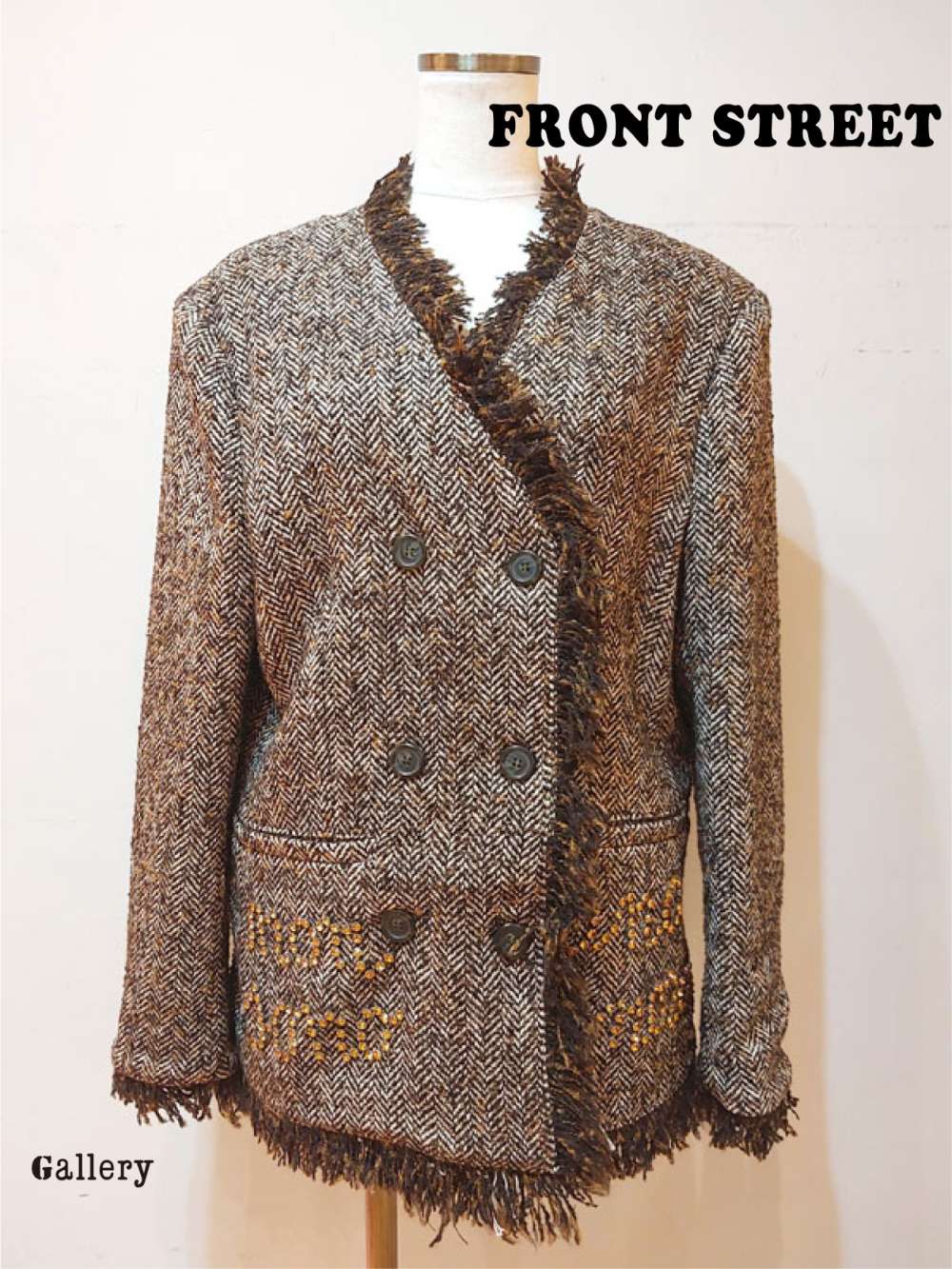 ◆FRONT STREET◆ノーカラー ツイードジャケット