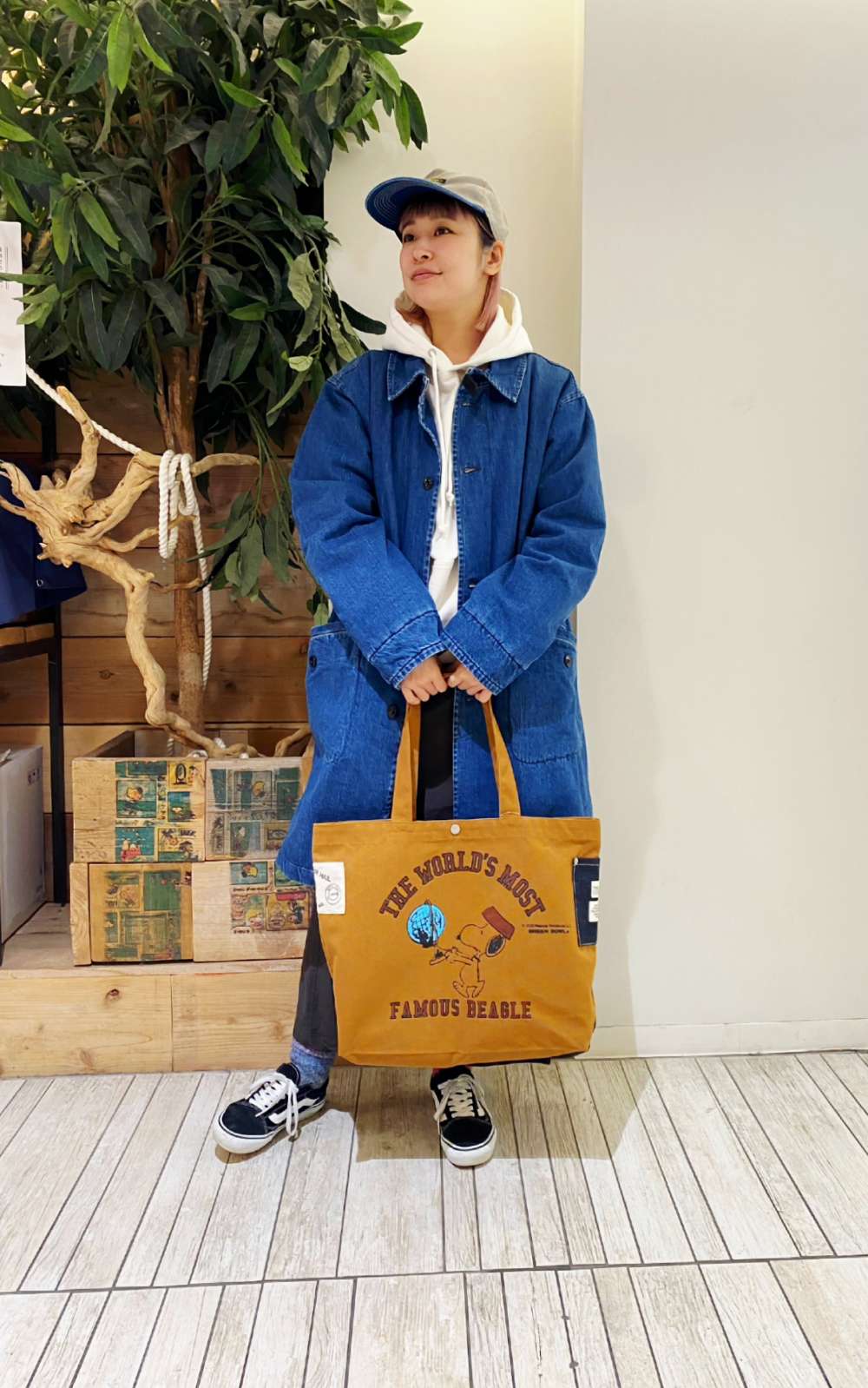 ポーチに続き、巾着も入荷しております! オリジナルプリントが施されたかわいいSNOOPYとデニムの切り替えし、 更に紐のカラーもアクセントになって可愛...