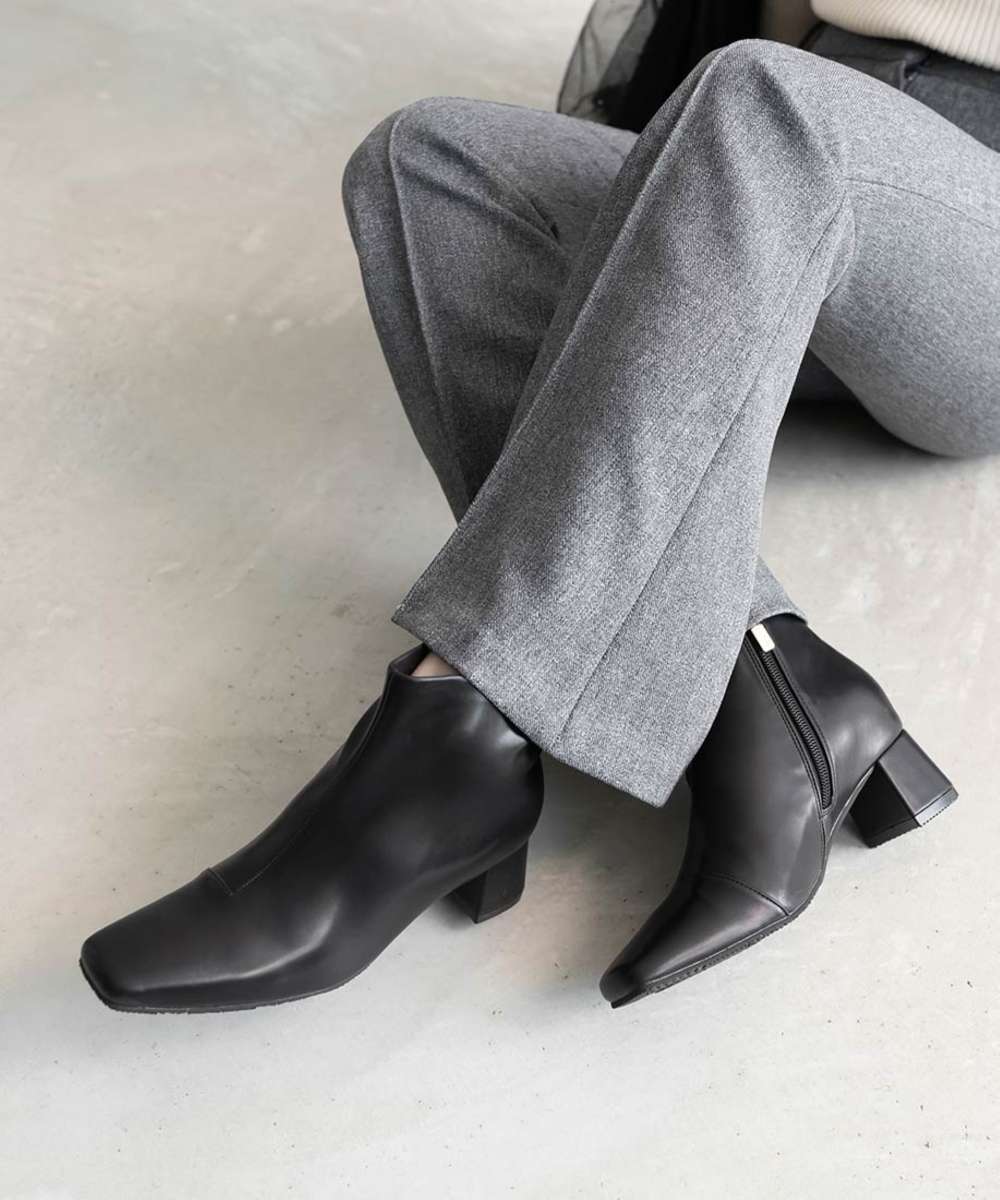 晴雨兼用 スクエアトゥミドルヒールショートブーツ