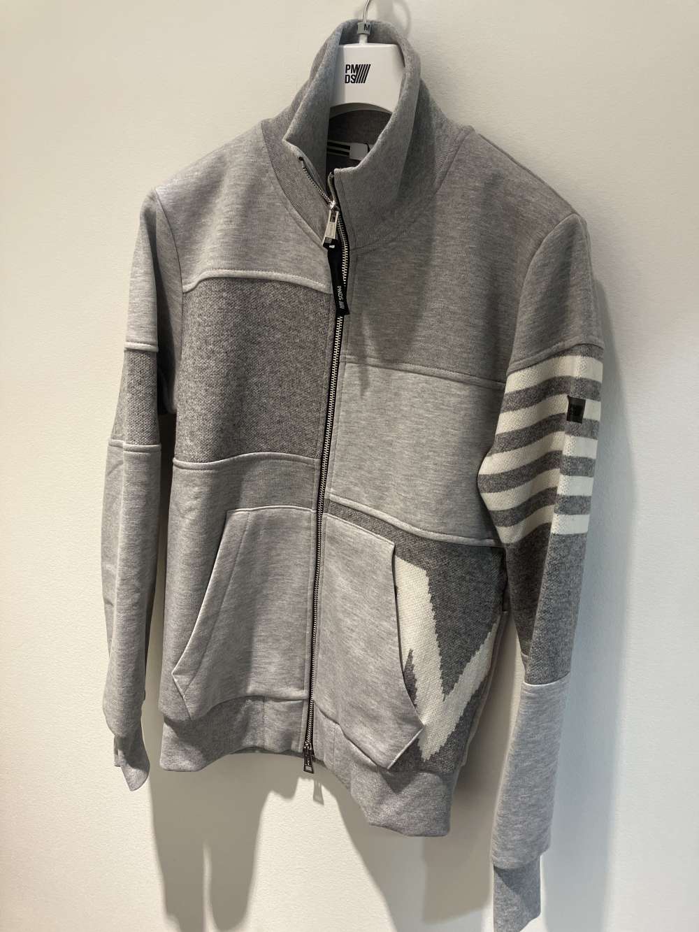 都会的なパッチワーク風 デザインが効いてます 異なるトーンのグレーをパッチワーク風に組み合わせたスタイリッシュなデザイン。 ジャケットのフロントは...