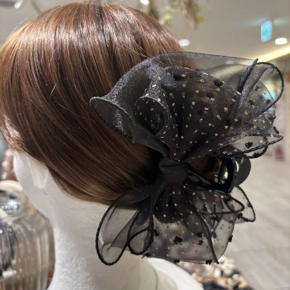上品さと華やかさを兼ね備えた、大人可愛いリボンバンスクリップ。 透け感のあるオーガンジー素材を贅沢に重ね、立体的でふんわりとしたボリューム感が魅力です...