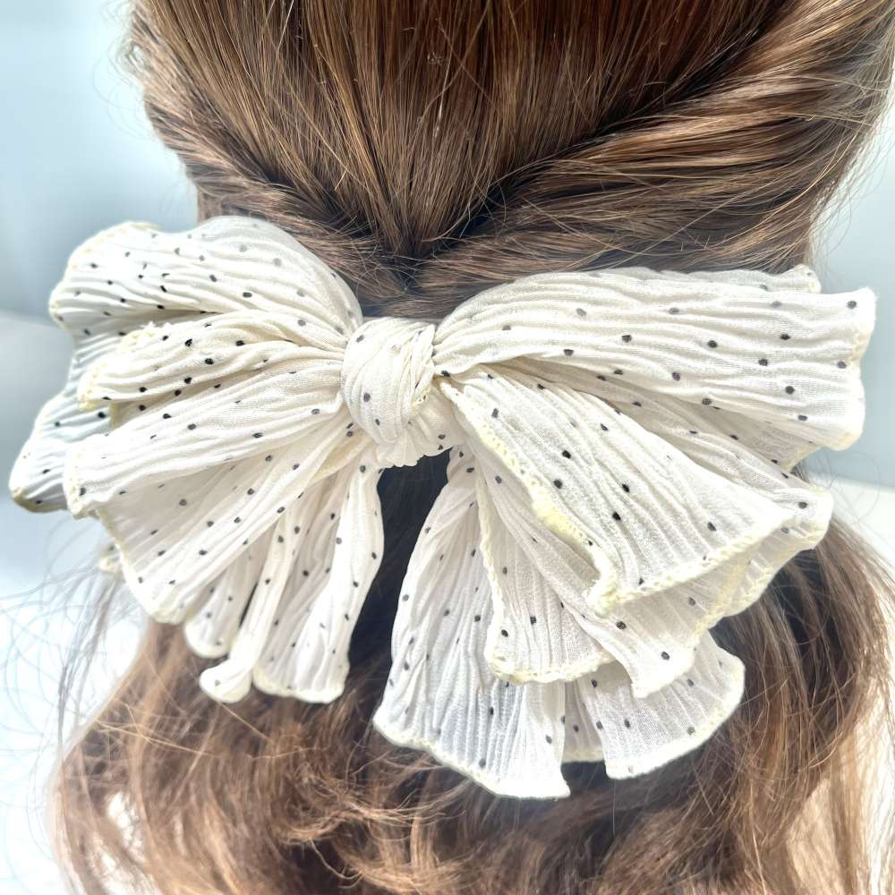 軽やかなシアー素材に、 さりげないドットを散りばめた 上品なボリュームリボン🎀 ふんわりとした立体感で、 ひとつ結びやハーフアップにプラスするだけで...