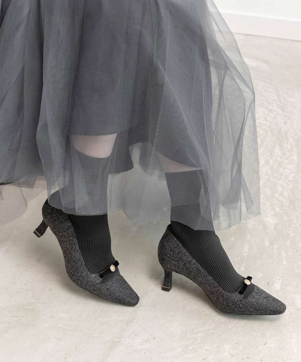 お問い合わせ番号:PC36009 M2A オリジナルのパールボタンがクラシカルな印象のニットドッキングブーツ。 上品なベロアミニリボンをフロントに施...