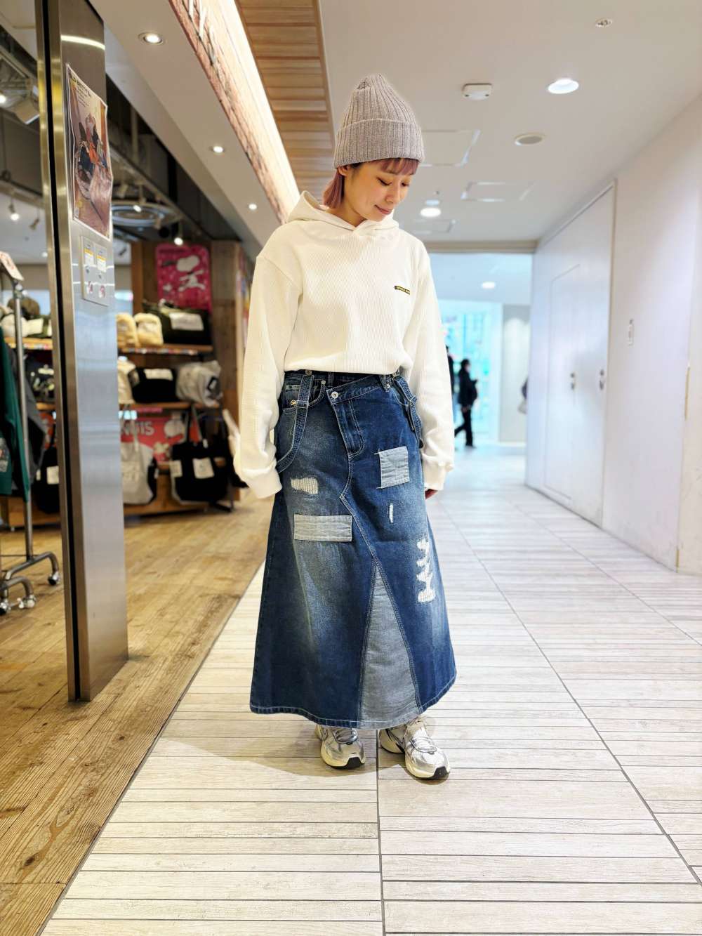 120z ムラインディゴデニムを使用したサスペンダースカート。 特殊な洗い加工やダメージ加工、パッチワークを施す事で、リアルなヴィンテージ風の外観に仕...