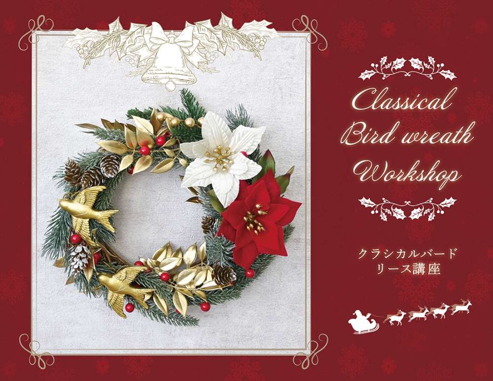 ポインセチアに寄り添う小鳥のオブジェをあしらったクラシカルなリース。 お部屋に飾れば、クリスマス気分が高まります。 クラシカルバードリース作りにぜひ、...