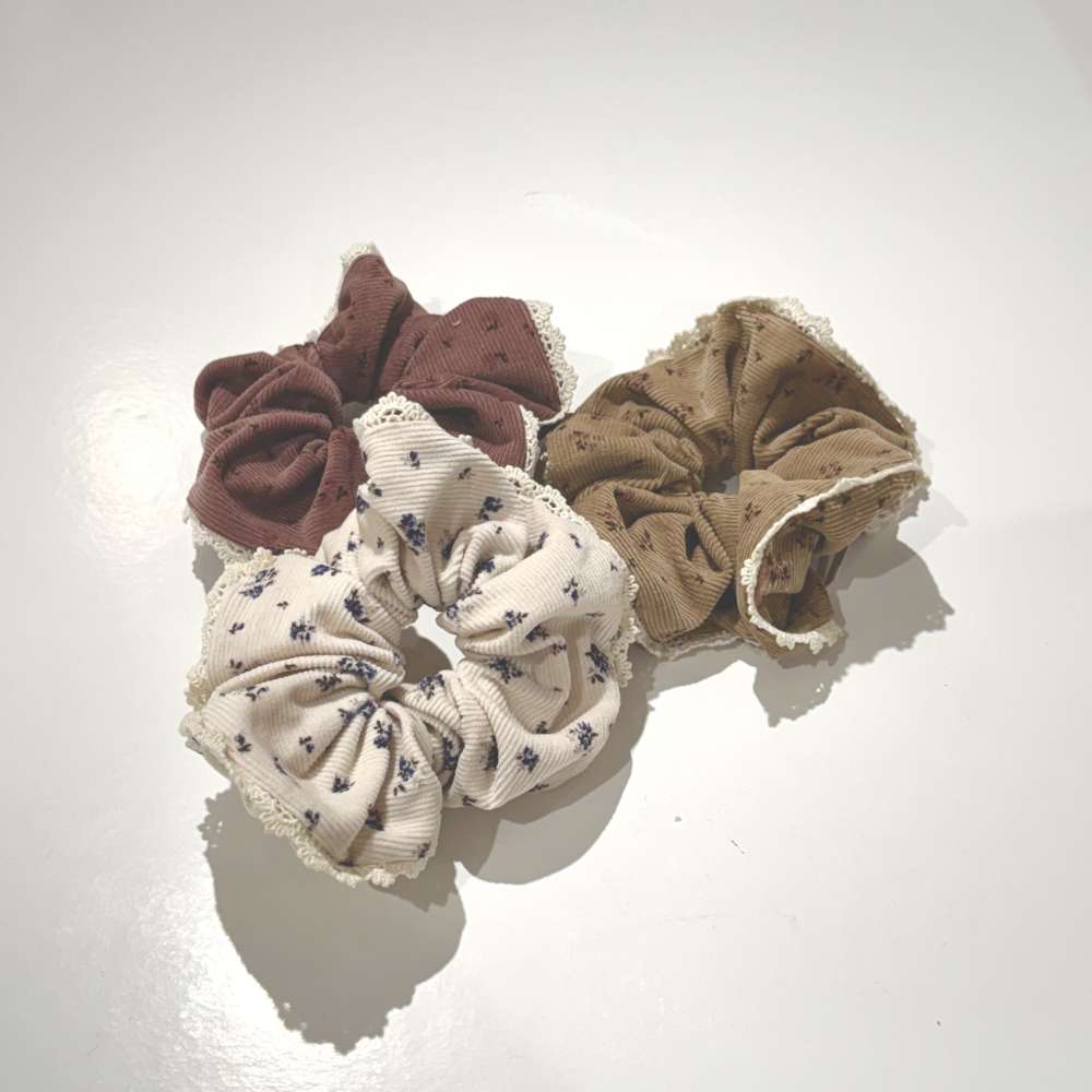 可愛めファッションに人気な花柄シュシュが入荷いたしました。 〜3color〜¥1,600(+tax)