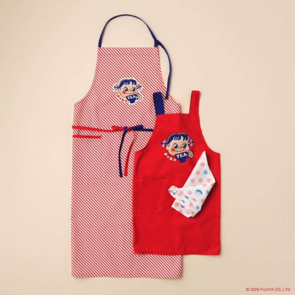 紅茶時間を楽しむペコちゃんのキュートなアートや、親子でおそろいで着られるエプロン・Tシャツなど、