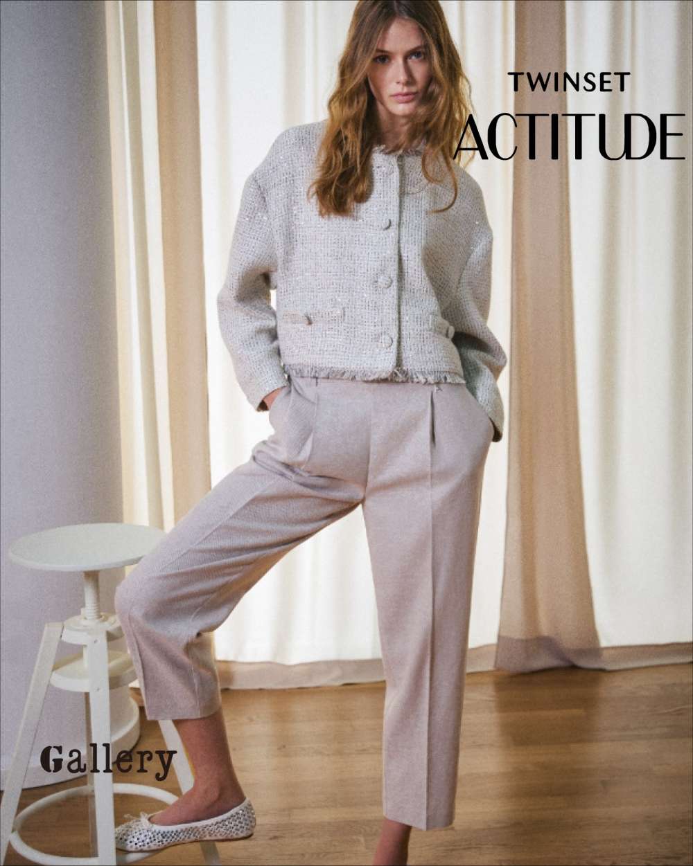 ドルマンシルエットが軽やかに見せます。
