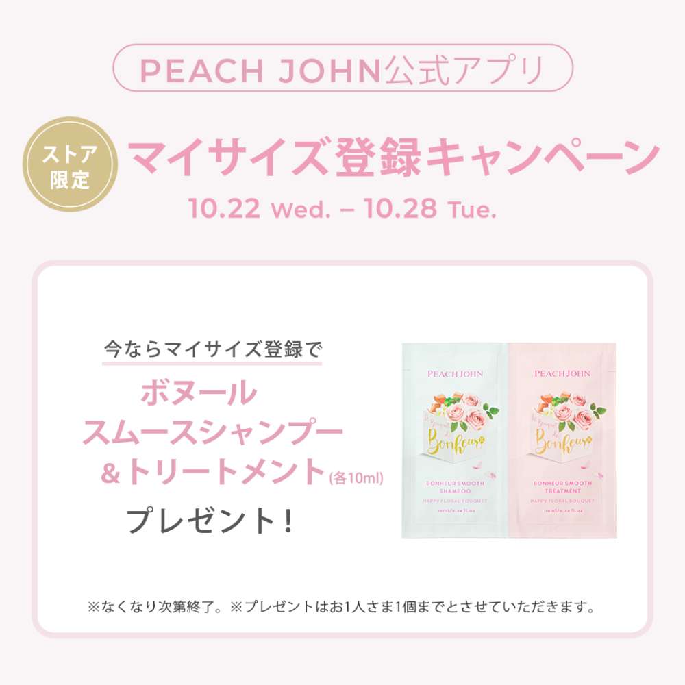 マイサイズ登録キャンペーン開催! 10/22(水)~10/28(火)の期間中、アプリダウンロードの上、マイサイズ登録で 「ボヌール スムージングシャン...