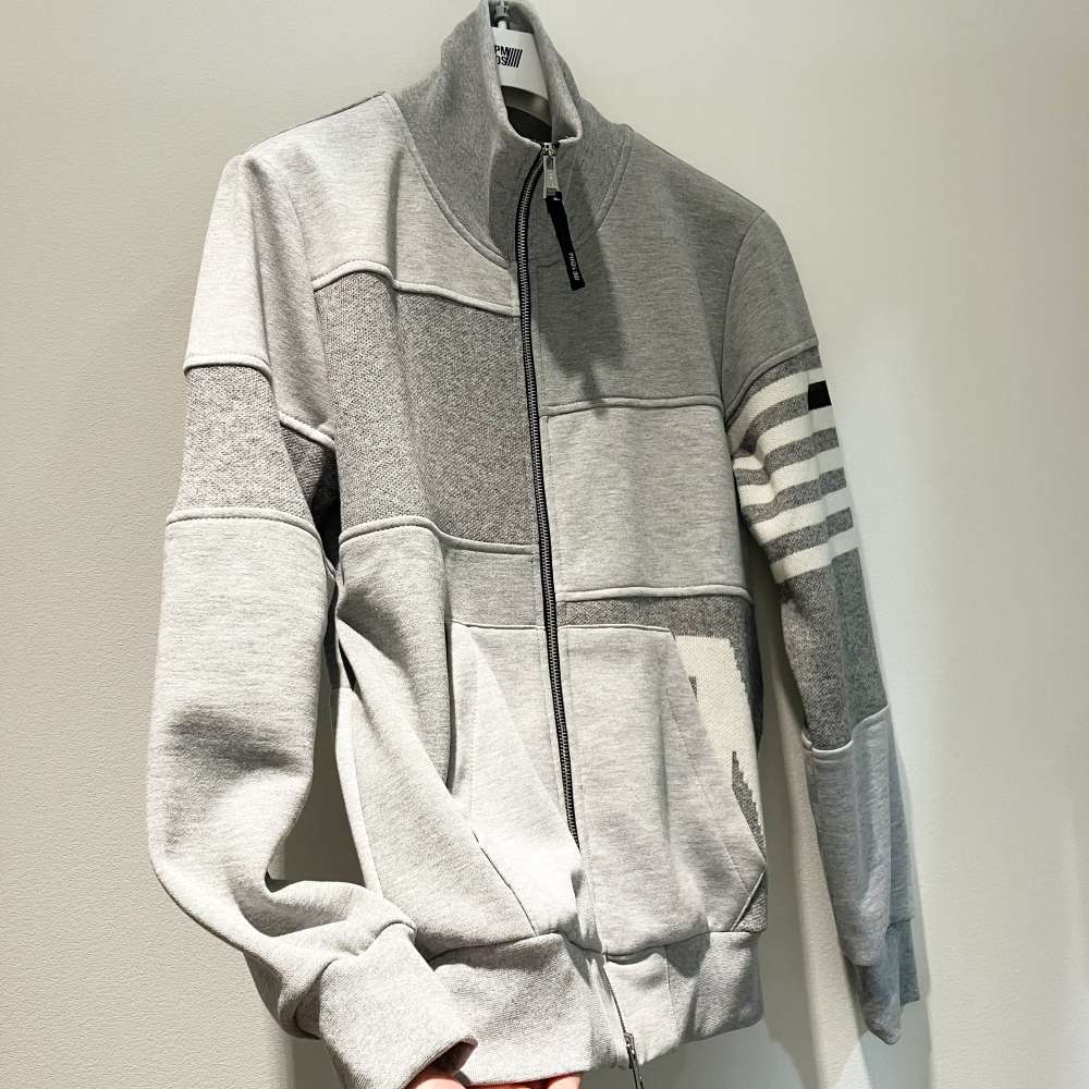 都会的なパッチワーク風 デザインが効いてます。 異なるトーンのグレーをパッチワーク風に組み合わせたスタイリッシュなデザイン。ジャケットのフロントはダ...